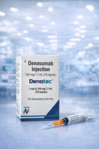Denotect 120 mg (Denosumab Injection) is an advanced bone-targeted therapy that helps protect bone integrity and reduce complications in cancer patients with bone involvement, supporting improved quality of life under specialized medical care.